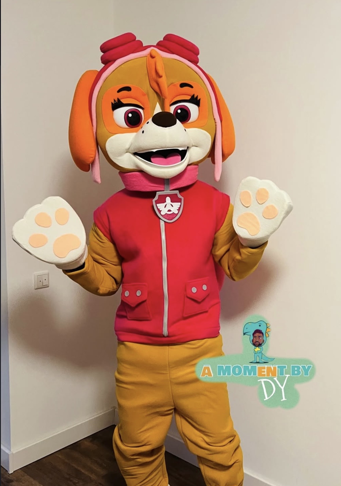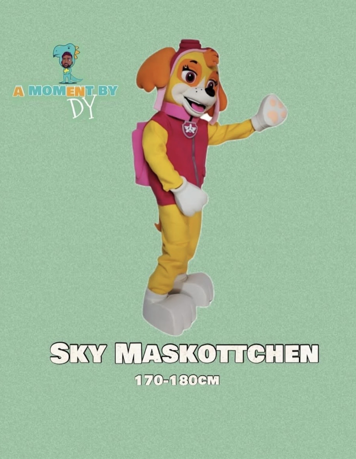 Die fliegende Heldin Skye aus PAW Patrol verzaubert als lebensgroßes Maskottchen jedes Mädchenherz. Mit ihrem pinken Outfit, der Pilotenmütze und den charakteristischen Pfoten ist Skye der perfekte Überraschungsgast für unvergessliche Geburtstagsmomente.