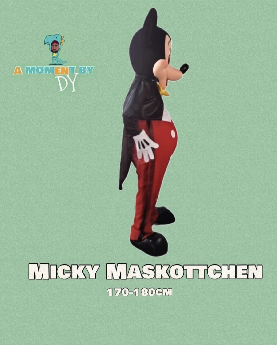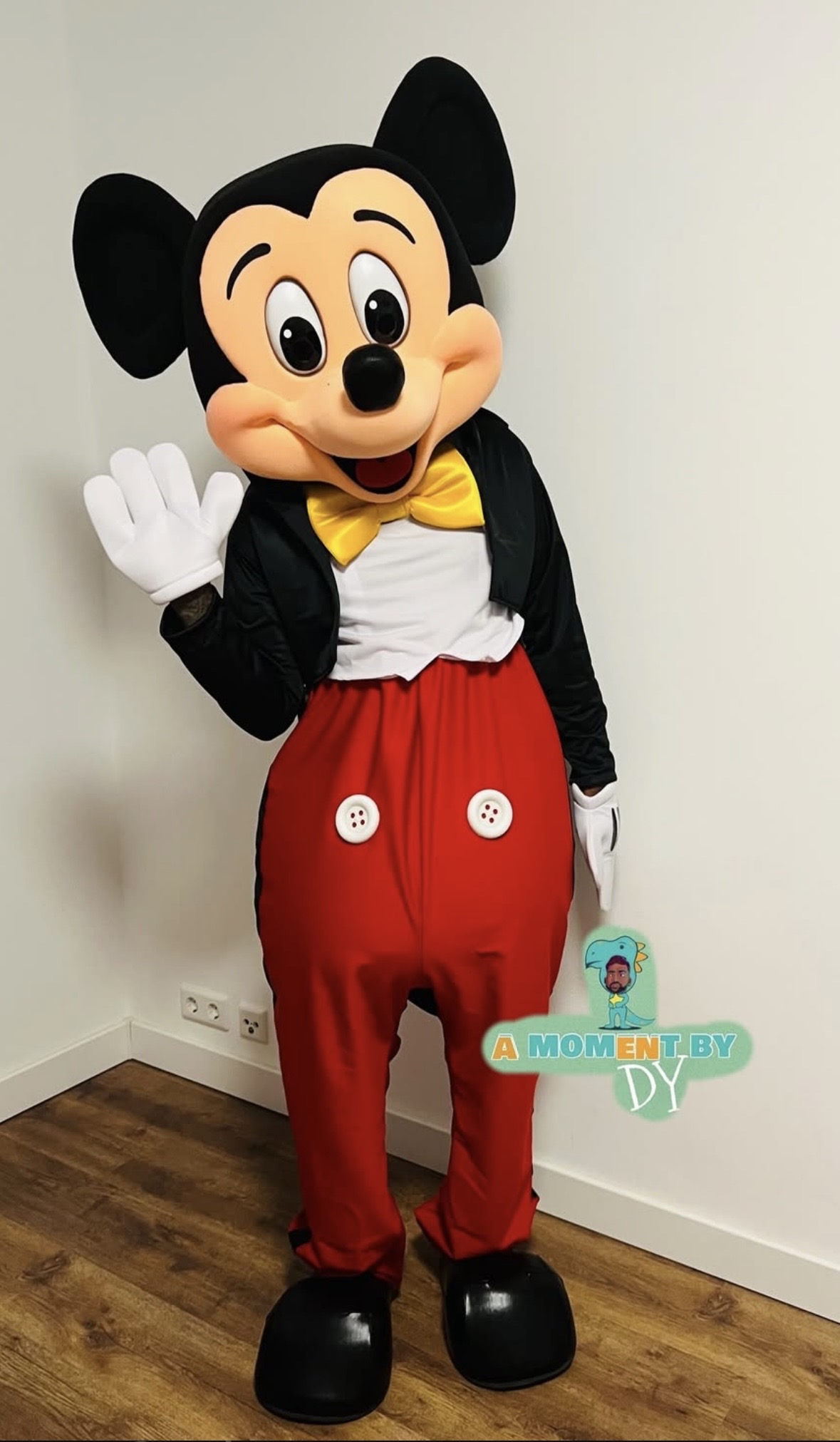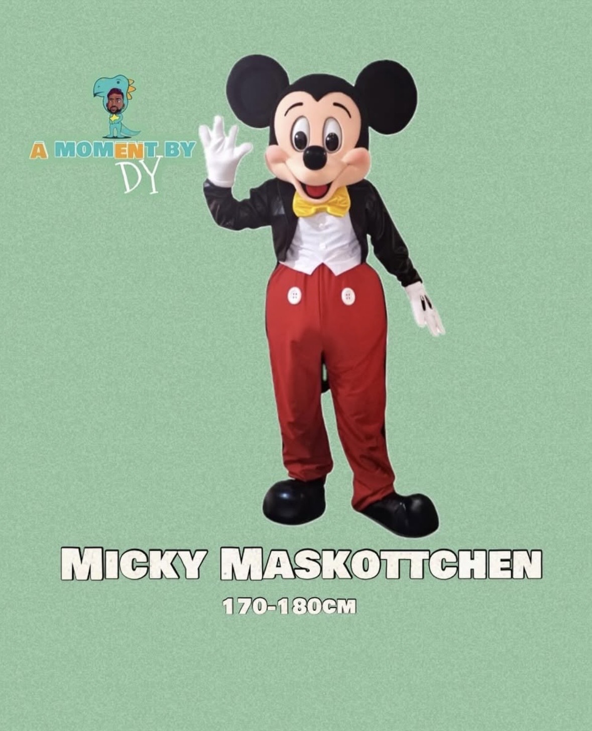 Der weltberühmte Micky Maus bringt Disney-Magie direkt auf Ihre Feier! Mit schwarzem Frack, gelber Fliege und den ikonischen roten Hosen ist dieses hochwertige Maskottchen ein unvergesslicher Höhepunkt für Kindergeburtstage und Events aller Art.