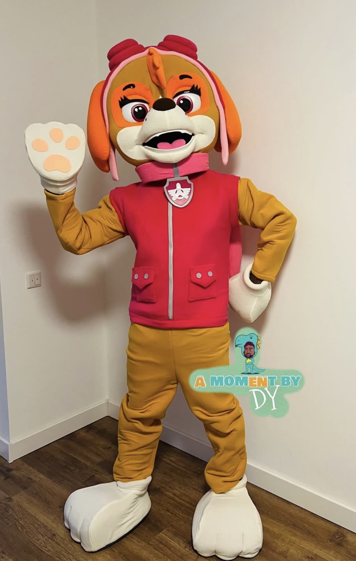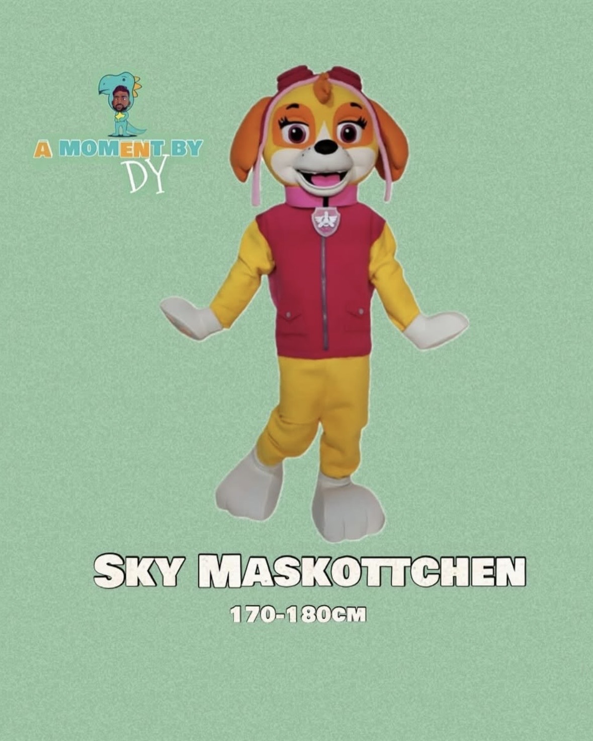 Die fliegende Heldin Skye aus PAW Patrol verzaubert als lebensgroßes Maskottchen jedes Mädchenherz. Mit ihrem pinken Outfit, der Pilotenmütze und den charakteristischen Pfoten ist Skye der perfekte Überraschungsgast für unvergessliche Geburtstagsmomente.