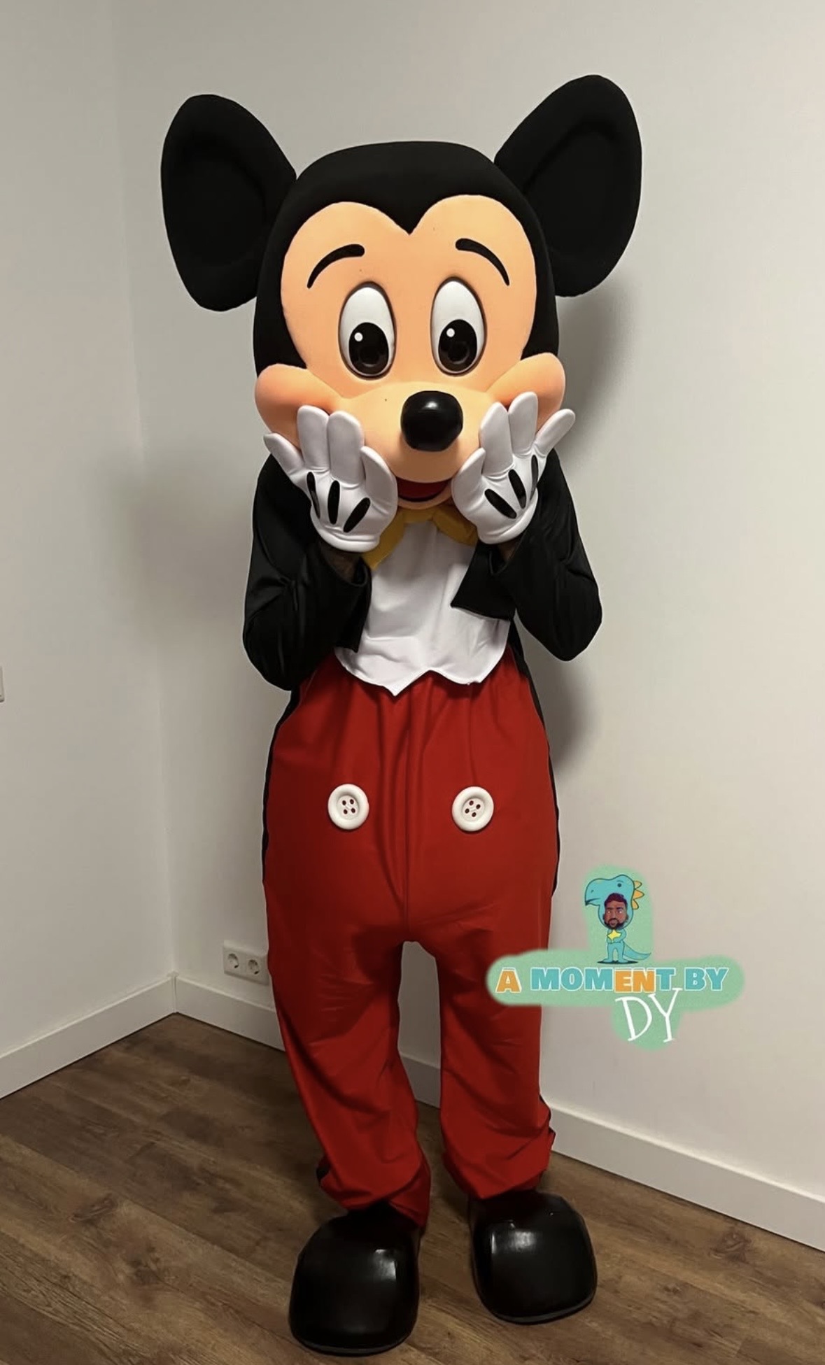 Der weltberühmte Micky Maus bringt Disney-Magie direkt auf Ihre Feier! Mit schwarzem Frack, gelber Fliege und den ikonischen roten Hosen ist dieses hochwertige Maskottchen ein unvergesslicher Höhepunkt für Kindergeburtstage und Events aller Art.