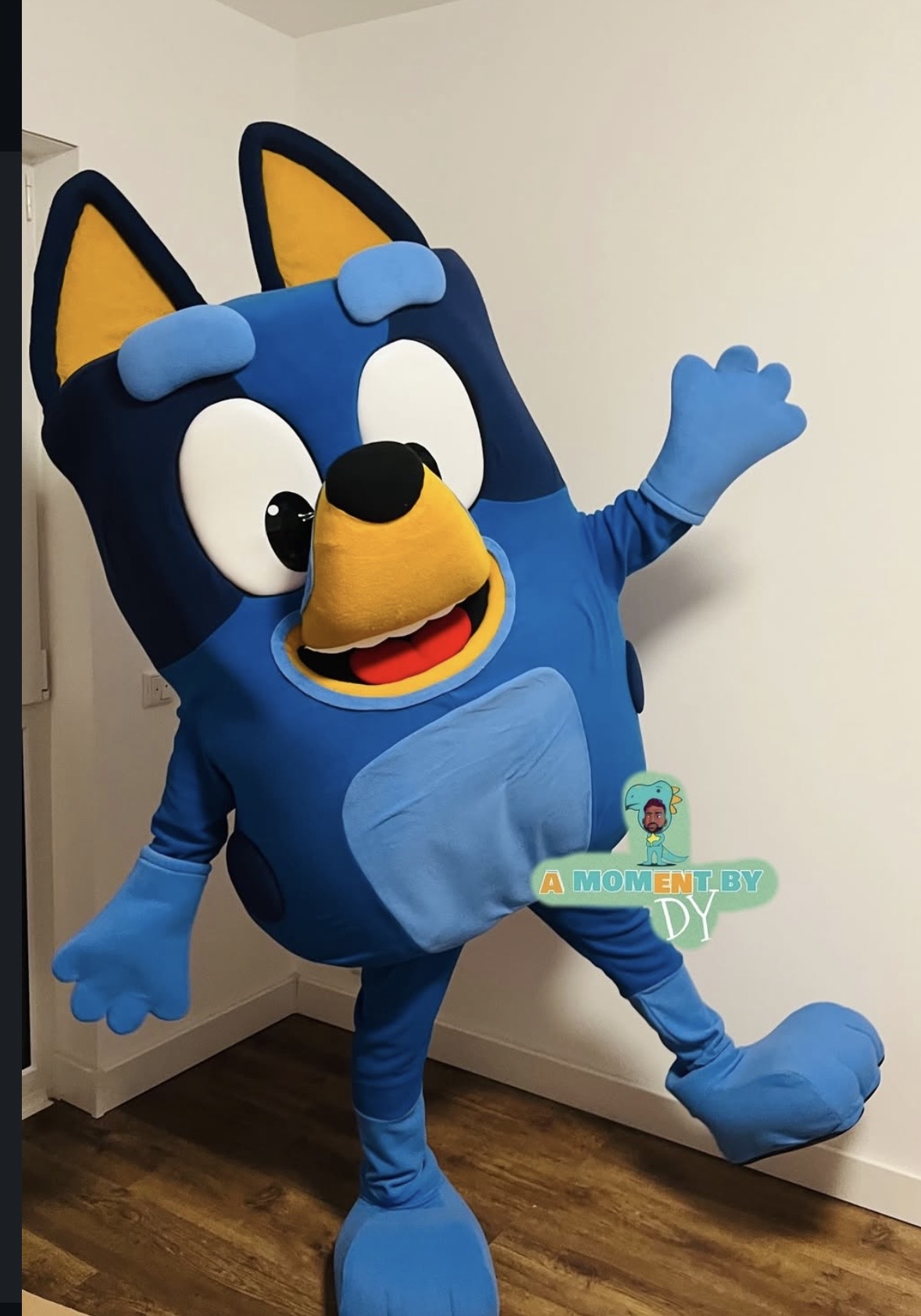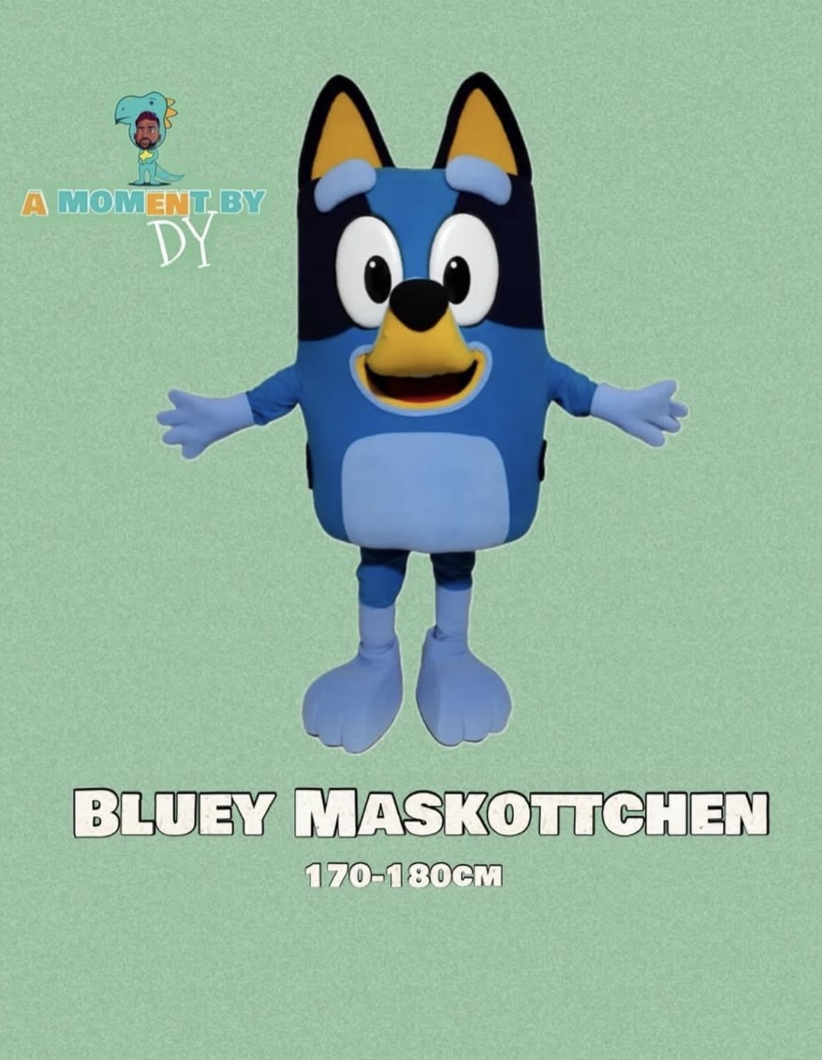 Die beliebte blaue Heeler-Hündin Bluey begeistert als lebensgroßes Maskottchen kleine und große Fans gleichermaßen. Mit ihrem freundlichen Gesicht und den charakteristischen blauen Farben sorgt Bluey für magische Momente und jede Menge Spielspaß auf Ihrer Feier.